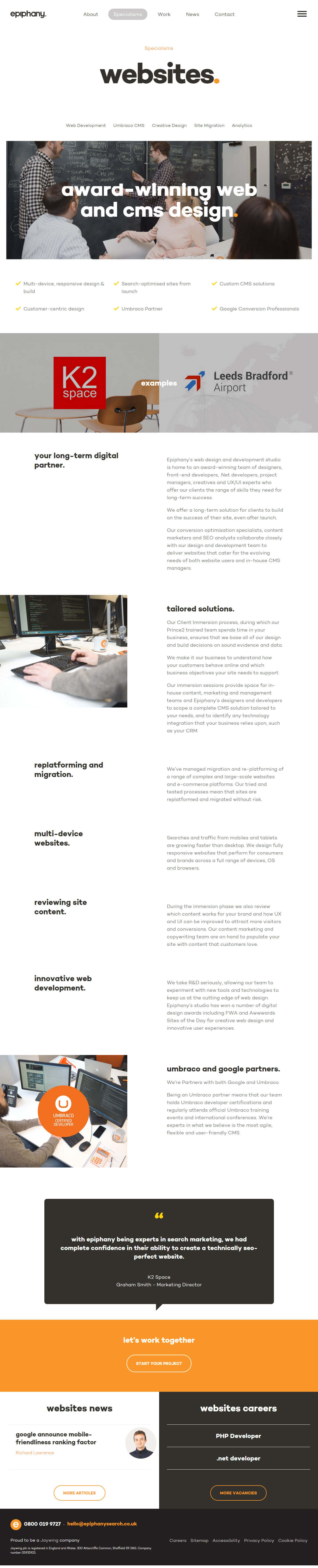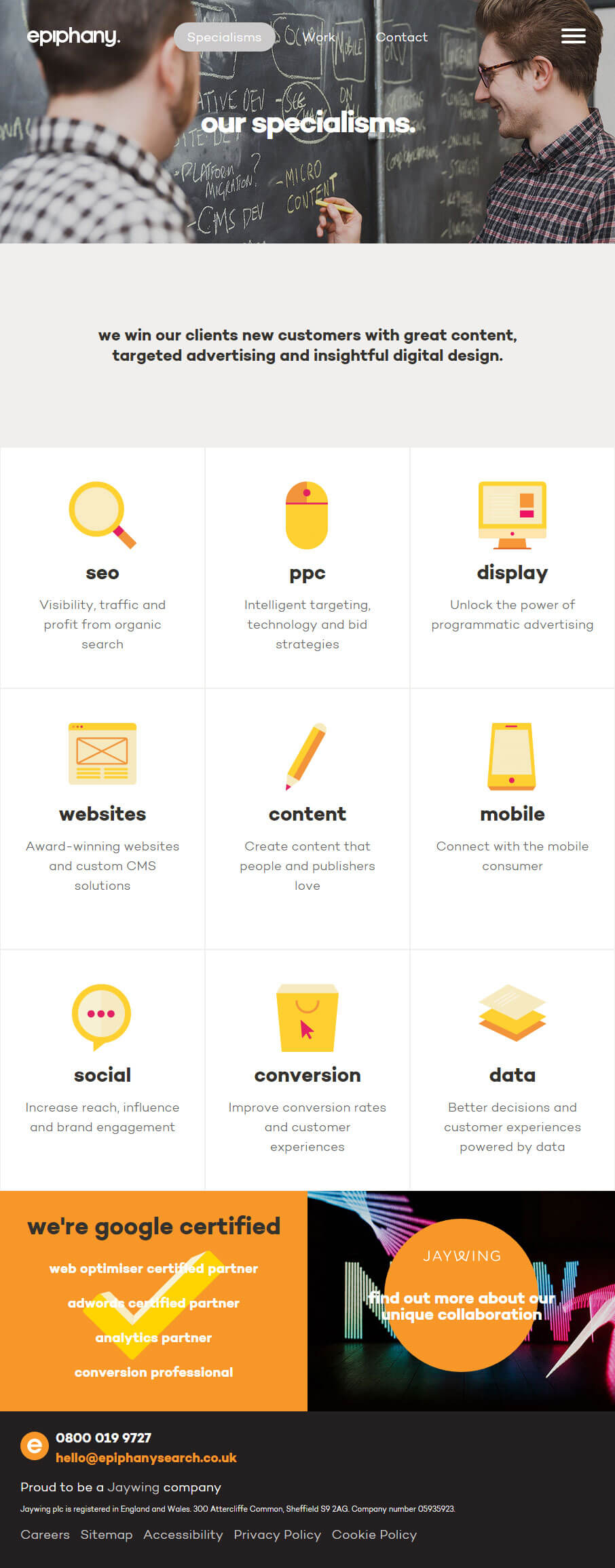 I led the front end build for the Epiphany agency site. Working closely with members of the design and backend development teams, along with stakeholders in and out of the business, I built multiple templates and reusable components to meet a hard deadline.