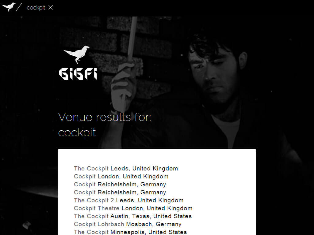 Gigfi is a web app for creating and playing Spotify playlists, which are populated with songs by bands who will soon be playing in your city, no matter where in the world you are.
